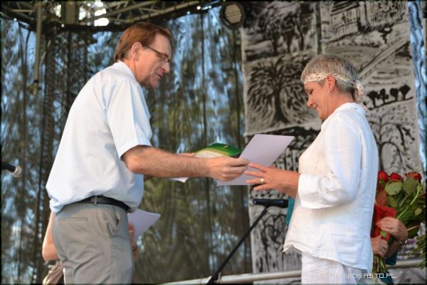 - Serce rośnie patrząc na państwa, jak zaczynaliśmy bardzo dawno temu- 6 lat- to było wśród was bardzo wiele, wiele kobiet i bardzo mało mężczyzn korzystających z tych zajęć w ramach Uniwersytetu Trzeciego Wieku. Teraz widzę jest lepiej panowie i brawo dla was. (…) Myślę, że młodzi powinni wam zazdrościć tej aktywności, wdzięku, uroku, chęci. Jak to śpiewała Maryla Rodowicz– „Żeby nam się jeszcze chciało chcieć”. Chciałabym, żeby te wszystkie dzieci, które koło nas biegają i również młodzież, żeby w waszym wieku miała tyle radości, tyle uśmiechu i tyle osobistych wartości, które państwo kujecie w ramach tego uniwersytetu. Życzę państwu wszystkiego najlepszego, dalszej radości w tej pracy, funkcjonowania bardzo dobrego stowarzyszeniu. Udzielajcie się państwo, bądźcie aktywni, bo to jest drugie życie, albo wydłużone to pierwsze, jak kto woli. Wszystkiego najlepszego! – mówiła podczas zakończenia roku akademickiego Ewa Kossak.Około godziny 16.30 na scenie wystąpił Artur Andrus z wykładem słowno- muzycznym- „Literackie mapy miast współczesnych”. Były gromkie brawa i salwy śmiechu.