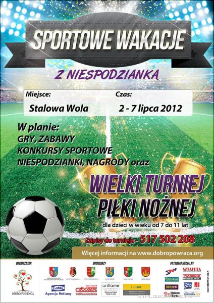 - Stalowa Wola 2-7 lipca 2012 r., boisko PSP nr 7 od 10.00 – 13.00 - Grębów 9 – 14 lipca 2012 r. - Pysznica 30 lipca – 5 sierpnia 2012 r. - Nisko 6 – 12 sierpnia 2012r.Ponadto odbędzie się także Wielki Turniej Piłki Nożnej chłopców i dziewczynek w wieku 7 – 11 lat, gdzie zostaną wyłonieni mistrzowie czterech miejscowości. Mecze podczas turnieju nie będą długie, jedna połowa będzie trwała 8 minut, potem nastąpi zmiana stron.