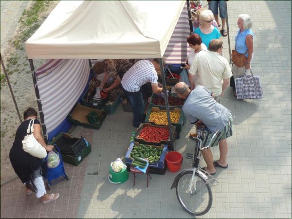 Robiąc zakupy na naszym targu zauważyłem pewną prawidłowość. Niemal na wszystkich straganach, wagi ustawione są w taki sposób, że odczytanie ilości ważonego towaru nie jest możliwe gdyż wskażnik wagi zasłonięty jest przez skrzynki lub inne elementy wyposażenia straganu. Powyższe polecam uwadze organom kontrolnym handlu gdyż mniemam ,że takowe ST W istnieją.
