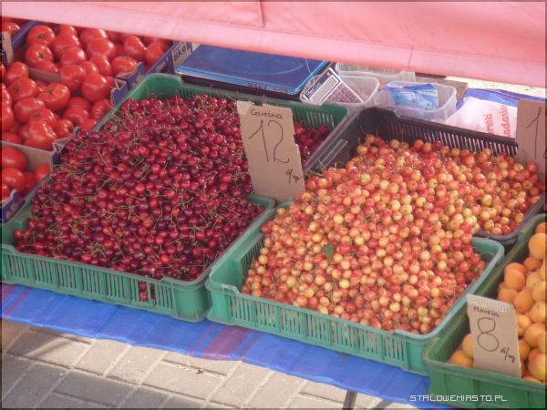 W czereśniach natomiast można przebierać do wyboru do koloru, ich ceny wahają się w zależności od tego jak bardzo są dojrzałe (6 do 12 zł). Młode ziemniaczki Lord i Orlik- duże i małe można nabyć w cenie 1 zł kilogram. Dostępne są także stare ziemniaki po 60 gr./ kg. Cukinie można dostać po 2 zł. Koszyczek malin kosztuje 6 zł, kilogram moreli- 7– 8 zł.