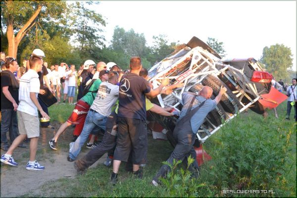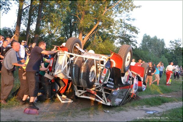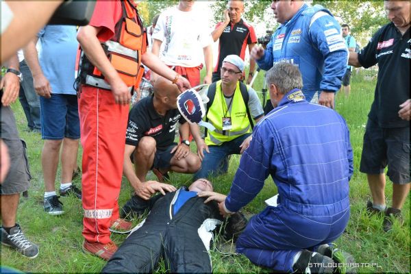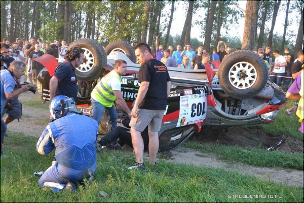 Bylem widziałem to na wlasne oczy ale nie to mnie przeraziło. Jestem zszokowany jak bezmyślni są ludzie którzy stali z małymi dzięćmi 1 m przy trasie rajdu bezpośrednio obok pędządzych pojazdów wyczynowych. Myślę że dzieki temu że ten wypadek się wydarzył i zatrzymali ten etap nikt nie zginął. Nie przesadzam to był horror a organizator wogóle nie powinien dopuśćić do tego etapu z uwagi na tych bezmyślnych ludzi. Węgierskiej załodzę życzę szybkiego powrotu do zdrowia.