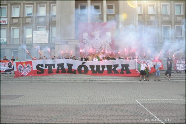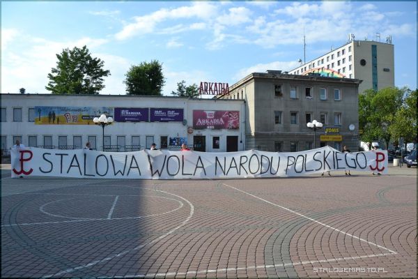 Panowie stojąc na schodach MDK trzymali transparent z napisem „Stalówka”. Nieco dalej Autonomiczni Nacjonaliści prezentowali olbrzymi napis „STALOWA WOLA NARODU POLSKIEGO”. Obie grupy zgodnie i w przyjaźni świętowały rocznicę wybuchu Powstania Warszawskiego. Sam Miejski Dom Kultury został także ozdobiony orłem na czerwonym tle, którego widać było z daleka, jeszcze kilka godzin przed obchodami rocznicowymi.