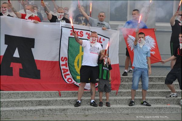 Miłośnicy lokalnej piłki nożnej zebrali się przed wejściem do Miejskiego Domu Kultury w Stalowej Woli, gdzie zgodnie czekali do godz. 17.00. Niemalże każdy kibic oddał hołd powstańcom zakładając koszulki z godłem Polski, bądź z barwami Stali. Wiele osób swoją twarz zasłoniło bandanką z symbolem Polski Walczącej.