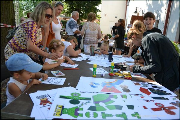 Moc atrakcji dla dzieciNa uczestników Komiksowego Rodzinnego Pikniku czekało wiele atrakcji m.in.: zabawy plastyczne – komiksowe kirinami, origami 3D, papierowe zwierzaki czy komiksowe wycinanki. Chętni wzięli udział w warsztatach scrapbookingu, tworzyli notes, zakładkę do książki z motywami stalowowolskimi. Dzieci z niewielką pomocą wykonywały papierowe kostiumy super bohaterów takich jak Batman czy Superman. Dzięki specjalnie przygotowanym monidłom można było również zrobić sobie zdjęcie wcielając się w postać Supermana lub Marzi. Najlepsze prace wykonane przez dzieci wzięły udział w konkursie plastyczny z nagrodami. Dodatkową atrakcją było malowanie twarzy, na policzkach najmłodszych pojawiały się także motywy z komiksów.