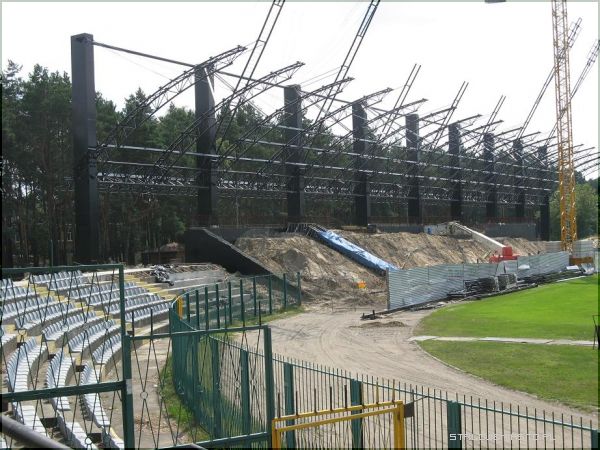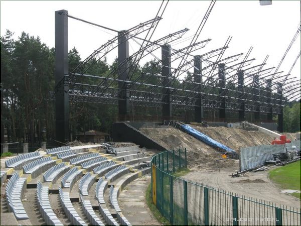 Zgadzam sie .Ta trybunka to zenada!!!!!jak mozna pozwolic na takie cos?Takie cos powinno byc wybudowane w trzy miesiace.Czemu ta trybunka jest taka krotka??Jak mi ktos powie ze to pierwszy etap i takie tam bzdury to bez jaj .Nie bedze zadnego trzeciego etapu ani czwartego tz ze nie bedzie trybbun za bramkami a wiec trybuna powinna siegac przynajmniej od jednej linji bramkowej do drugiej linji bramkowej.A taka trybunke na pol boiska to niech sobie w dupe wsadza.Chmielewski..daj ty sobie spokoj z praca na tym stanowisku.Taki sam laik jak ten od drog w Nisku.Kompletne dno.