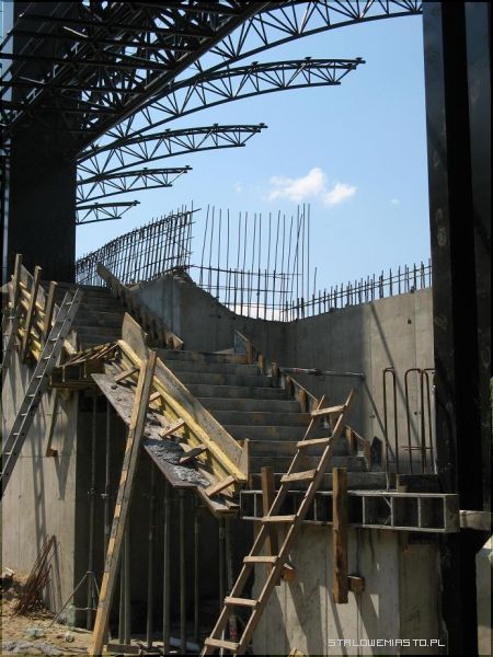 Władze miasta nadal sceptycznie podchodzą do zapewnień wykonawcy, ale ten podkreśla, że uda mu się dokończyć prace w wyznaczonym terminie. Andrzej Chmielewski, dyrektor MOSiR w Stalowej Woli, jest zadowolony z postępu robót. Obecnie robotnicy utwardzają teren na którym będą siedziska. Do szalunków lany jest cement, stąd nie ukończono jeszcze budowy konstrukcji dachu bo to przeszkadzałoby pracy żurawia.