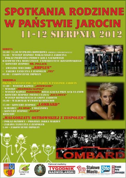 W niedzielę 12 sierpnia odbędzie się „Piknik turystyczno – kulinarny w Państwie Jarocin”. Punktualnie o 12.00 rozpocznie się cykl koncertów. Na scenie jako pierwsi zagrają Jeżowianie, następnie wystąpi kapela Flisacka, działająca przy GCK Ulanów. Jako kolejny na scenie pojawi się zespół pieśni i tańca „Racławice”, a zaraz po nim będzie można zobaczyć występ reprezentacji Gminy Jarocin. O 16:00 czas dla najmłodszych i Waldemar Wywrocki dzieciom. O 17.00 na scenę wkroczy legendarny zespół „LOMBARD”. Po koncercie chwile umili kabaret z Bojanowa „Na opak”. Kolejnym punktem programu będzie występ zespołu „BAFLO”, a zaraz po nim zaśpiewa Małgorzata Ostrowska z zespołem. Taneczna zabawa w niedzielę potrwa do 1.00, w międzyczasie będzie można podziwiać pokazy ogniowe.