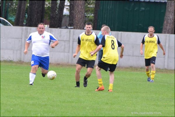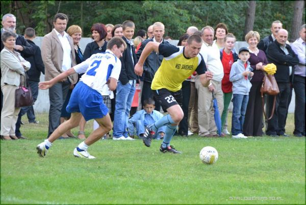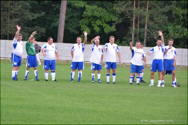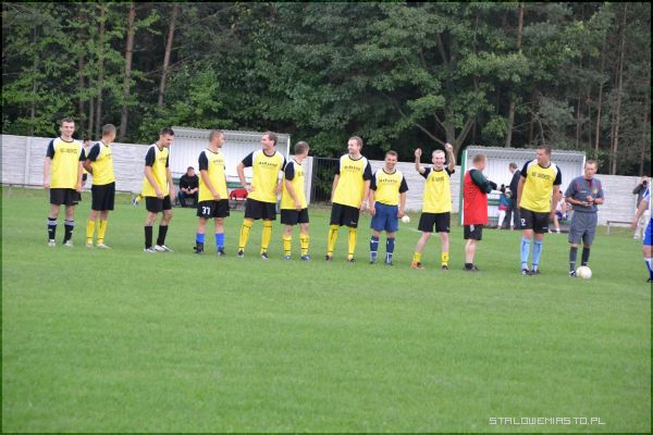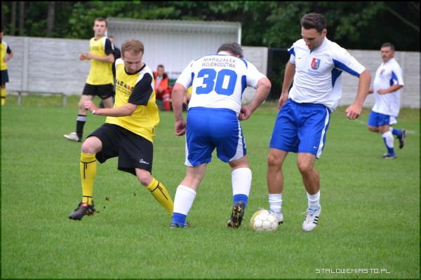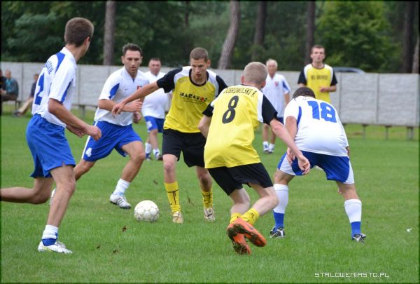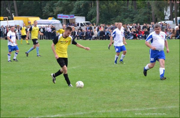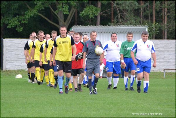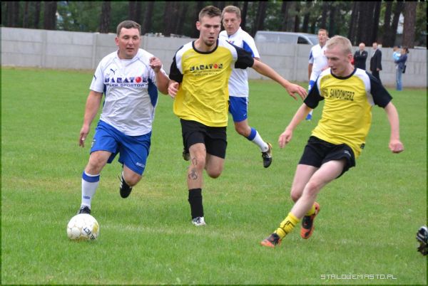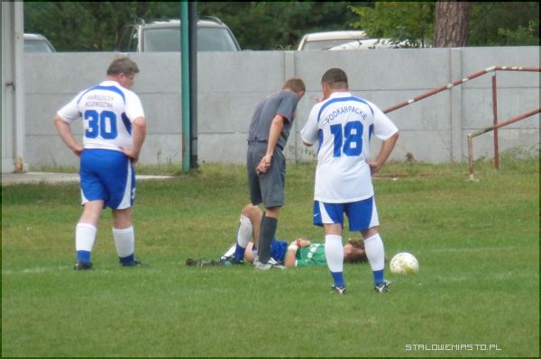 1 połowa: zacięta walka obu drużynZaczęło się źle, bowiem od pierwszej minuty piłkarzom przyszło biegać w deszczu. Na szczęście taka pogoda nie trwała długo, bo po kilku minutach niebo się rozpogodziło, a nad głowami licznie przybyłych sympatyków sportu czasem wyjrzało nawet słońce.
