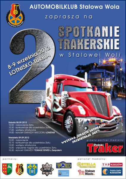 Automobilklub Stalowa Wola zaprasza na 2 Spotkanie Trakerskie, które odbędzie się w dniach 8 – 9 września 2012r. na terenie lotniska w Turbi.