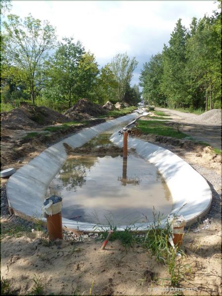 rozbabrali i nieskonczyli bo im nie dowiezli kamienia, dzisiaj wlasnie szedlem i kamien lezal wysypany wiec sie wreszcie za to zabiora...robia zgodnie z planem, koryto jest!