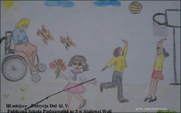 Jaki jest świat osoby niepełnosprawnej?Uczniowie Zespołu Szkół Ogólnokształcących nie zawahali się i postanowili wniknąć w trudną codzienność osoby niepełnosprawnej. To, co tam „zobaczyli”, za pomocą różnych technik, odwzorowali na kartkach bloku rysunkowego. I zostali docenieni w konkursie zorganizowanym przez Stowarzyszenie Niepełnosprawni Sprawni z Katowic.