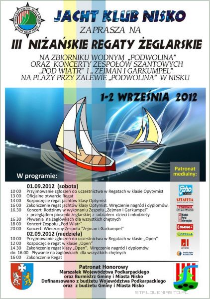 Regaty i to jakie…!Dziś i jutro w na zbiorniku wodnym „Podwolina” w Nisku odbędą się III niżańskie regaty żeglarskie. Zagrają także zespoły szantowe „Pod wiatr” i „Zejmnan Garkumpel”.