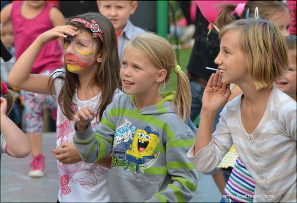 Po placu zabaw już od 15:00 spacerowały dzieciaki z pomalowaną twarzą i włosami. Jak zabawa, to zabawa! Dużą popularnością cieszyły się zwłaszcza konkurencje rodzinne. Chętnych do zmagań nie zabrakło.