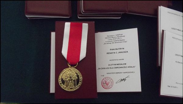 Boże mój kochany!Pani Renata Butryn złoty medalza zasługi dla obronności!!!Młodzi ludzie jadą w świat,w upale,w spiekocie,z ogromnym narażeniem życia pełnią służbę wojskowa a medale otrzynują Ci zza biurka.A gdzie są choćby rodzice tych żołnierzy,sami żołnierze...