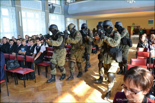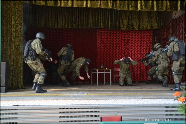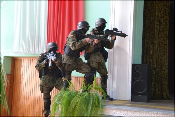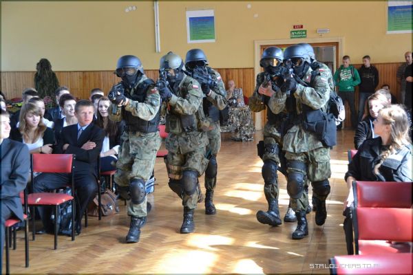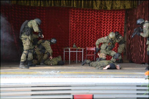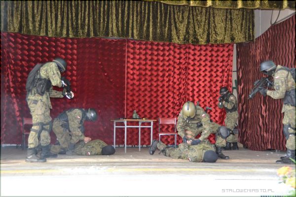 Zanim doszło do podpisania umowy uczniowie szkoły oraz zaproszeni goście mieli możliwość obejrzenia pokazów wojskowych. Duże wrażenie na zgromadzonych w auli ZS nr 1 wywołał pokaz odbijania zakładnika przez grupę wojskową.