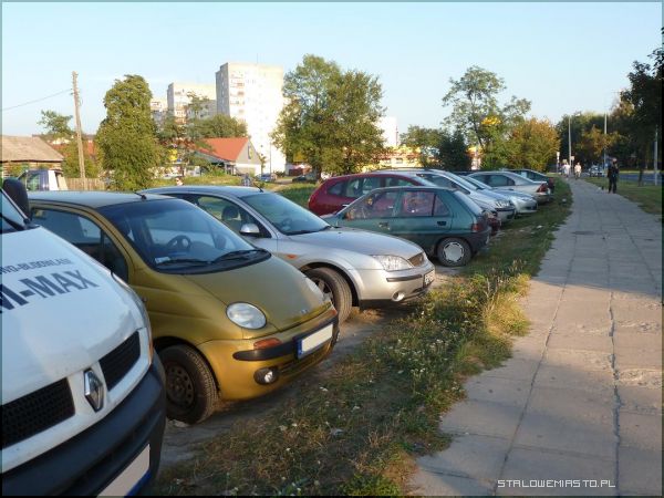 Przy Poniatowskiego 30 parking systematycznie się powiększa. Mieszkańcy, którzy nie znajdują bezpośrednio pod swoim blokiem miejsca, parkują wzdłuż chodnika dla pieszych na piaszczystym podłożu. Rząd aut z miesiąca na miesiąc staje się coraz dłuższy, sięga już trawiastego terenu. Czasami pojawia się także i drugi ciąg aut po drugiej stronie. Lokatorzy bloku rozkładają ręce. Muszą tak robić, bo jak sami przyznają, nic innego nie można w tej sytuacji zrobić.