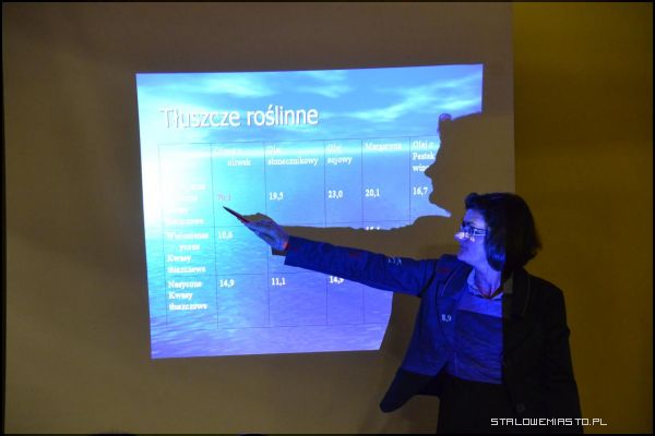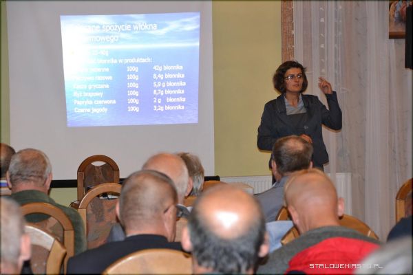 - Dzisiejsze spotkanie wprowadziło naszych byłych pacjentów w tematykę zdrowego odżywiania i higienicznego stylu życia. Wykład prowadzi pani dietetyk, która szczegółowo przestawi zalecenia prozdrowotne, które będą sprzyjać chorobom serca. Na zakończenie spotkania wykład miała pani psycholog, która w jakiś sposób zadbała o strefę psychiczną naszych byłych pacjentów, bo to jest bardzo ciężki, traumatyczny moment przejście takiego zdarzenia jak zawał serca. Chcielibyśmy naszych pacjentów otoczyć taką kompleksową opieką, również psychologicznych– mówiła dla Portalu StaloweMiasto.pl Joanna Kruczak. Ciekawe poradyW środę członkowie Klubu Pacjenta mieli okazję poznać tajniki zdrowego odżywiania. Zostało obalonych także wiele mitów na przykład na temat tego, że nie wolno jeść jajek. Uczestnicy dowiedzieli się m.in. tego, że nie każde ciemne pieczywo jest tak naprawdę zdrowe. Na rynku pojawia się wiele „podróbek”. Białe pieczywo jest barwione na ciemny kolor i tak naprawdę wiele osób myśli, że dobrze się odżywia, a w rzeczywistości tak nie jest. Został rozwiany także mit dotyczący tego, że powinno się jeść jak najwięcej pokarmów bogatych w błonnik. Jak się okazuje, zbyt duże jego ilości mogą wpłynąć na obniżenie wchłaniania składników mineralnych, szczególnie wapnia i żelaza. Zalecaną dawką jest około 20 – 40 g, i tak np. 100 gram kaszy gryczanej to 5,9 g błonnika, w takiej samej ilości ryżu białego zawarte jest 8,7 g błonnika. Co ciekawe otręby pszenne w 100 gramach to porcja aż 42 g błonnika, natomiast w tej ilości czerwonej papryki jest go tylko 2 g. Kolejnym ciekawym tematem było- Co lepsze: olej czy oliwa? Wśród bogatych ofert jakie mamy na rynku najlepiej jest sięgać po oleje rzepakowe, które są najzdrowsze. Dietetyczka poleciła też do smażenia olej rzepakowy, natomiast do sałatek oliwę z oliwek. Nie wszyscy pacjenci wiedzieli też, że olej nie powinien być przechowywany przy kuchence, a jego przydatność po otwarciu to 30 dni. Kolejną interesującą informacją było zwrócenie uwagi na to, jak ważne dla naszego organizmu jest jedzenie orzechów. Jak dowodzą badania naukowców, codzienne spożywanie migdałów lub orzechów to redukcja choroby niedokrwiennej serca. Zalecane jest jedzenie, najlepiej każdego dnia, 40 gramów orzechów lub migdałów czyli około 1/3 kubka (lub około 34 orzechów). Kolejna dobra rada: jedzmy 3 razy w tygodniu ryby i unikajmy czerwonego mięsa, a jeśli już go spożywamy, nie zapominajmy o sporej dawce warzyw. Dietetyczka poleciła tygodniowo jeść od 3 do 4 jajek. Należy jednak pamiętać o produktach, gdzie „ukryte” są jajka (np. makarony). Jeśli je mamy w menu, to analogicznie jajek w tzw. czystej postaci powinniśmy mniej serwować na naszym stole.