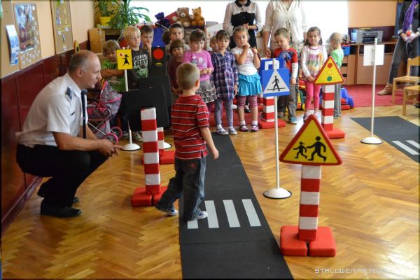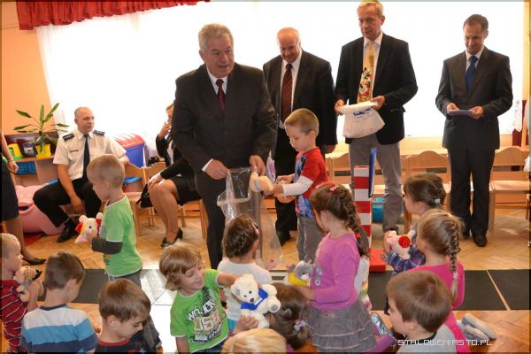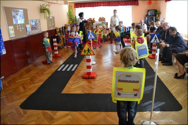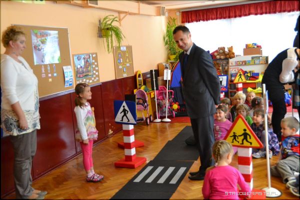 Zajęciom z wykorzystaniem Mini Miasteczka dla Przedszkolaka przyglądali się zaproszeni goście: dyrektorzy szkół podstawowych oraz przedszkoli ze Stalowej Woli, policjanci z Powiatowej Komendy Policji, przedstawiciele Wojewódzkiego Ośrodka Ruchu Drogowego oraz z ramienia miasta- wiceprzewodniczący Rady Miejskiej Dariusz Przytuła.