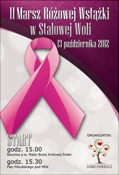 Organizatorem II Marszu Różowej Wstążeczki jest stalowowolskie stowarzyszenie Dobro Powraca.