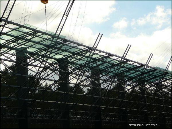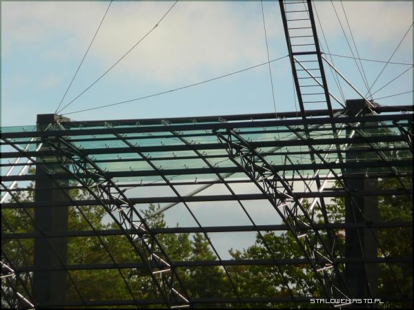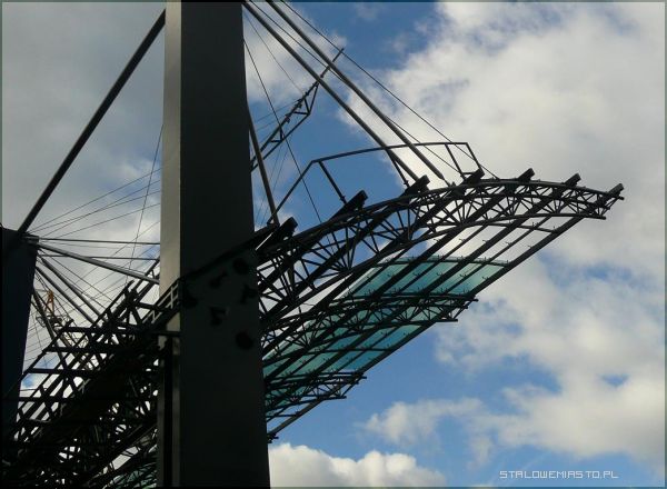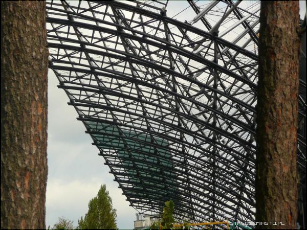 Dach już lśni w blasku słońcaOstatnio montowany jest dach. Ma on powierzchnię 1315 m kw. Szkło laminowane użyte do pokrycia jest odporne na rozbicie i posiada filtry UV. Ponadto dach będzie ogrzewany elektrycznie i zaopatrzony w specjalnie koryta i rynny zamontowane na bocznych słupach. Zapobiegnie to gromadzeniu wody opadowej.