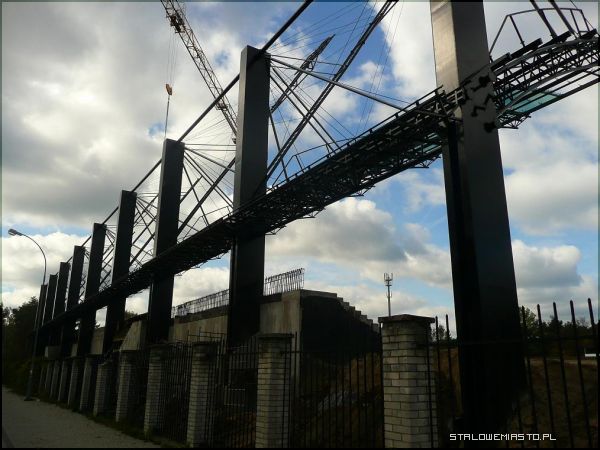 Trybuna przy ul. Hutniczej umiejscowiona jest po stronie wschodniej. Zapewni ona widzom 1430 miejsc. Koniec budowy tej części będzie oznaczał koniec pierwszego etapu prac przy stadionie. Ta część kosztowała budżet miasta niespełna 6 mln zł. W tym miesiącu trzeba będzie zainstalować krzesła i położyć kostkę betonową na powierzchni ok. 300 metrów kwadratowych, dokończyć budowę alejek dojazdowych.