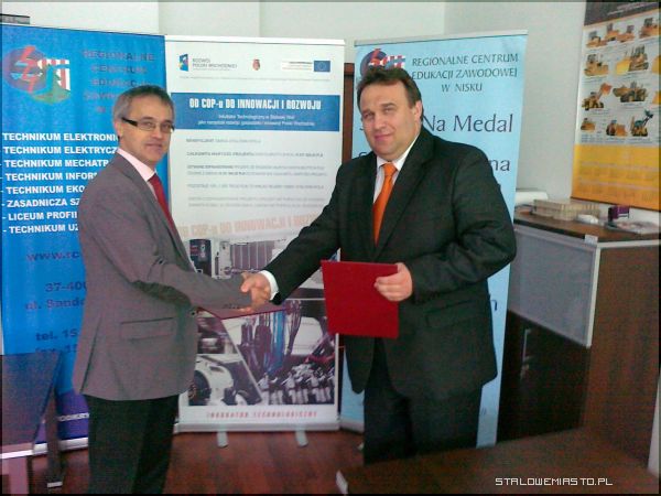 W ramach podejmowanej od zaraz współpracy Inkubator rozpocznie organizację szkoleń i kursów dla nauczycieli ze Stalowej Woli i okolic. Temat ten wcześniej był omawiany także z wójtami Powiatu Stalowowolskiego i ze Starostwem Powiatowym. Zajęcia te będą się odbywać w stalowowolskim Inkubatorze, dzięki czemu szkoły i nauczyciele zaoszczędzą czas na dojazdach. „-Możliwe jest też współdziałanie z Centrum, jak też z innymi naszymi partnerami w działaniach proedukacyjnych , polegające na wspólnym wnioskowaniu o finansowanie tych przedsięwzięć z centralnych programów operacyjnych oraz programu regionalnego. Tak realizowane partnerstwo niewątpliwie wzmacnia nasze wspólne, aplikacyjne szanse. Ten kierunek dobrze się także sprawdza w naszej współpracy z przedsiębiorstwami produkcyjnymi i uczelniami. Nasze partnerstwo lub pośrednictwo w pozyskiwaniu środków na rozwój dla firm jest już faktem” – przekazuje nam dyr. A. Kopyto. Na zdjęciu; w czasie podpisania umowy o współpracy z Centrum Edukacji Zawodowej.