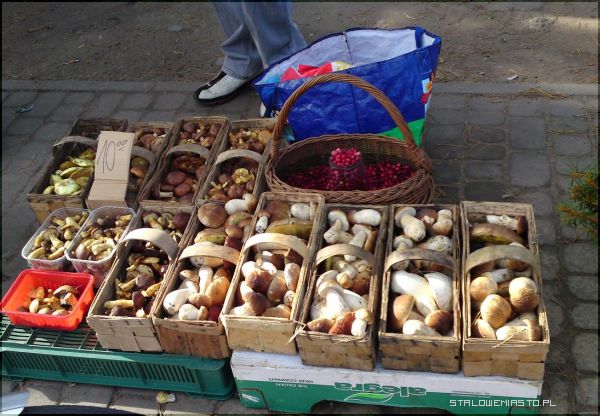 A dla szanujących czas- targCi, którzy od lat zajmują się sprzedażą grzybów, swoje cenne zbiory przynoszą na rynek. Za koszyczek (po owocach) podgrzybków trzeba zapłacić około 12-20 zł. Za podobną ilość borowików musimy dać o co najmniej 10- 20 zł więcej. Niewielki kosz dorodnych prawdziwków kosztuje nawet 100 zł! Na hali są też kanie w cenie od 0,5 zł- 1 zł za sztukę. Pojawiają się też rydze i kurki. Największym jednak powodzeniem cieszą się oczywiście podgrzybki i borowiki. Dla szanujących czas w ofercie są również suszone grzyby.
