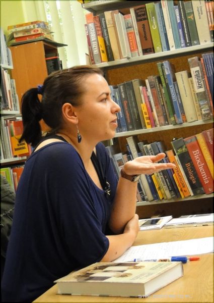 Spotkanie poprowadziła Katarzyna Skoczyńska, absolwentka filologii angielskiej Uniwersytetu Warszawskiego, była uczestniczka Warsztatów Poetyckich "Wers". Pani Katarzyna przybliżyła uczestnikom różne tendencje i podejścia w teorii tłumaczenia, przedstawiła techniki dostępne w pracy tłumacza i przeprowadziła krótkie warsztaty.