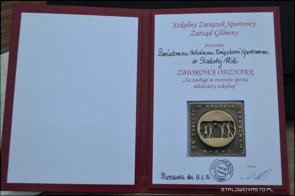 Tylko jedna taka nagroda dla Związku ze Stalowej Woli!Powiatowy Szkolny Związek Sportowy w Stalowej Woli otrzymał z rąk przedstawiciela Zarządu Głównego SZS w Warszawie Zbiorową Odznakę „Za zasługi w rozwoju sportu młodzieży szkolnej” jako najlepiej działający Powiatowy Szkolny Związek Sportowy na Podkarpaciu.