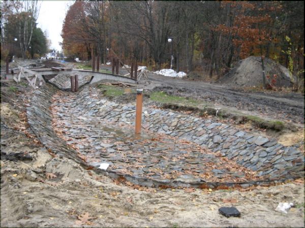 Obym się mylił, ale mam obawy, że ten obecny piękny projekt jest zbyt delikatny dla potencjalnych wandali. A i dla "wandalicznych" warunków atmosferycznych, też to wygląda na zbyt delikatne. Woda - mróż - słońce itp zmienne niekiedy gwałtownie anomalia pogodowe to też "wandale" mogące zamienić w gruzowisko zbyt delikatne "łupki" tego pięknego cieku wodnego. Ale jestem dobrej myśli, że projektanci o wszystkim pomyśleli i to nie tylko na jeden rok. Do zobaczenia za sto lat.