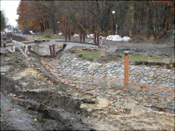 Strumyk gotowyW tej chwili pracownicy kończą porządkować teren na „górce”, gdzie wybudowano schody. To właśnie tam zostanie umieszczona jedna z rzeźb autorstwa profesora Stanisława Magdziaka. Wyłożony kamieniem łupkowym został również strumień i trzeba przyznać że efekt tych prac wygląda bardzo pozytywnie. Po zakończeniu prac, trudno będzie rozpoznać że strumyk jest sztucznym „tworem”. Nad ciekiem wodnym wybudowano dwa mostki z granitu. Teren w tej chwili wymaga jeszcze uporządkowania a trzeba dodać że do zrobienia jest sporo – łącznie z nasadzeniem roślinności. Do ustawienia, oprócz samych rzeźb, są także granitowe ławki. Wzdłuż głównej alei podłączone zostanie nowe oświetlenie, które jest już ustawione. Jeżeli wszystkie prace przebiegną pomyślnie, park w całej okazałości, wraz ze strumieniem pełnym wody i fontanną, ujrzymy wiosną.