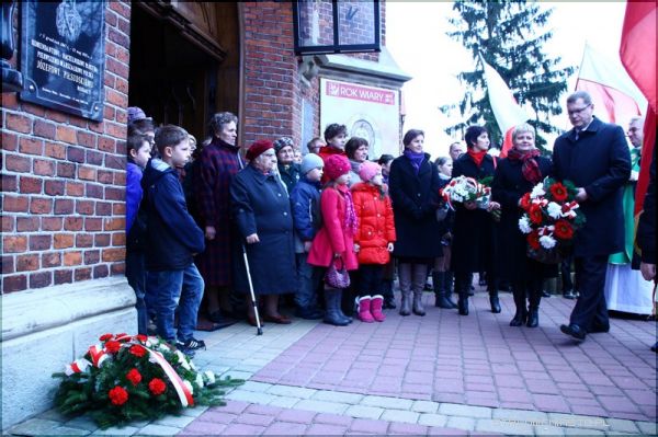 Wzruszeni parafianie oraz przybyli na uroczystość goście, a wśród nich radni miasta Stalowa Wola, w skupieniu wyszli ze świątyni i złożyli kwiaty pod tablicami wmurowanymi w ściany kościoła i poświęconymi 16 Lwowskiemu Batalionowi Strzelców i Józefowi Piłsudskiemu.