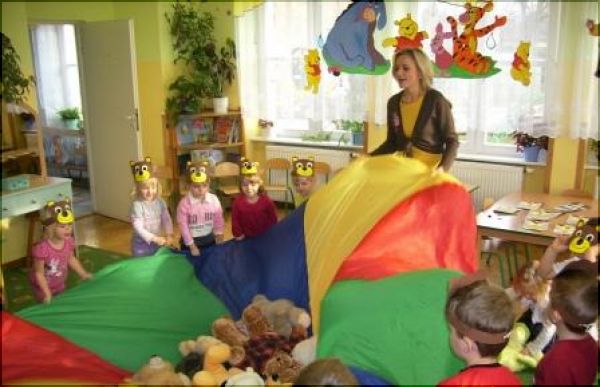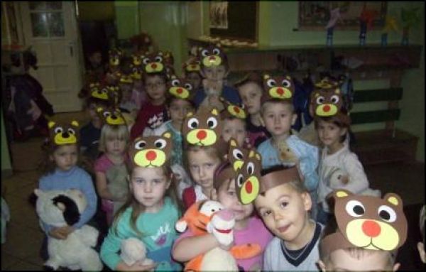 Z tej okazji przedszkolaki miały za zadanie przynieść do przedszkola swoich pluszowych przyjaciół – misie, w towarzystwie których odbyły się zabawy ruchowe ze śpiewem „Dwa malutkie misie”, „Misiu, misiu” oraz „Stary niedźwiedź”. Maskotki były różne, od bardzo malutkich do bardzo, bardzo dużych, a liczba pluszowych przyjaciół była imponująca.