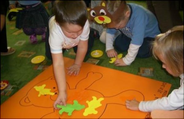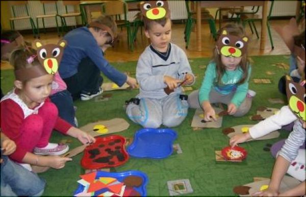 Na dzieci czekały również zadania plastyczne: ozdabianie papierowych torebek wizerunkami misia, oklejanie szablonami misia. Wszyscy śpiewali misiowe piosenki, kosztowali ulubiony przysmak misiów – miód, a na zakończenie uroczystości każde dziecko złożyło Akt Ślubowania Przyjaciela Misia. W nagrodę wszyscy otrzymali misiowy kotylion i słodkie małe co nieco.