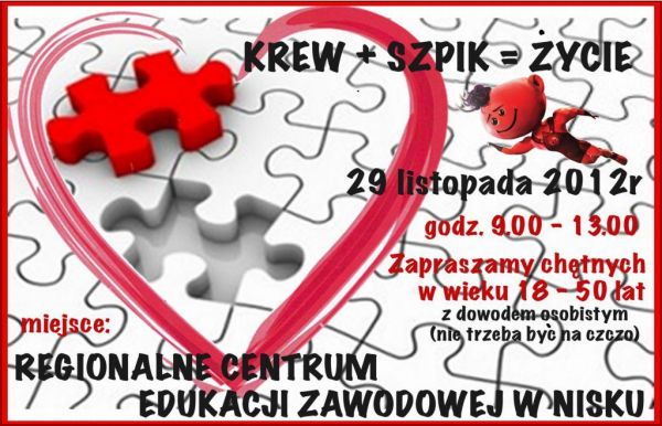 Już jutro, 29 listopada w Regionalnym Centrum Edukacji Zawodowej w Nisku odbędzie się kolejna akcja poboru krwi. Nie będzie to jednak zwykła zbiórka. Oddający zapalą kolejne światełko nadziei chorym na białaczkę. Ma ona celu promocję chętnych do poboru szpiku i odbywa się po raz pierwszy. Zawsze była to zbiórka związana z poborem krwi. Tym razem organizatorzy poszli o krok dalej.