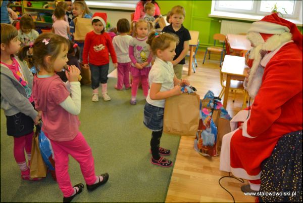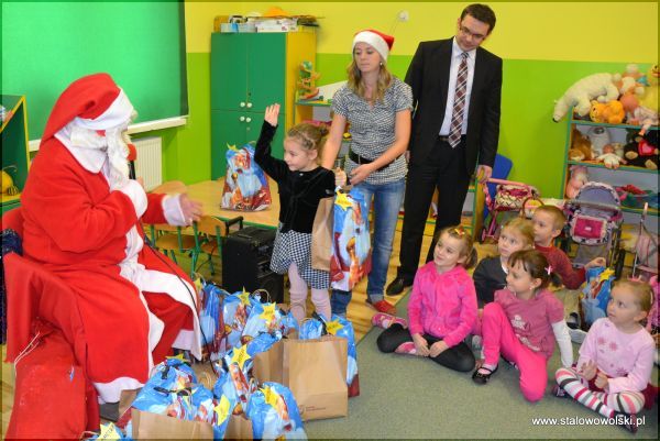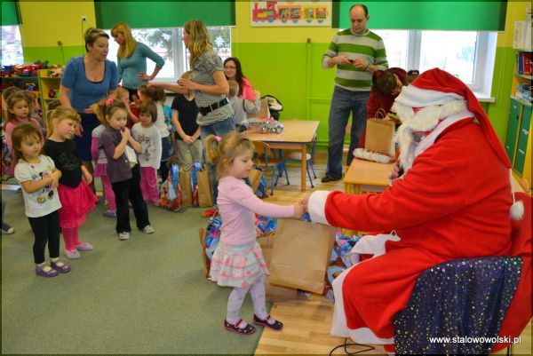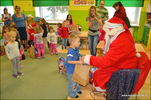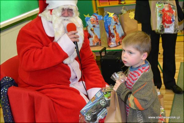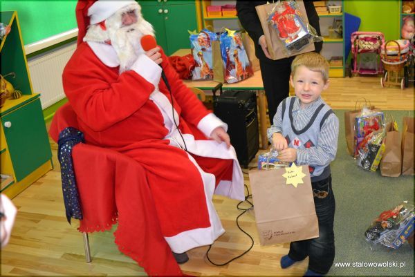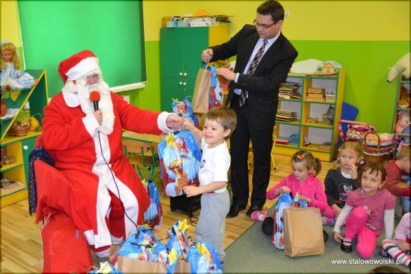 Oczywiście największą przyjemnością, oprócz widoku Pana z brodą w czerwonym płaszczu, były… prezenty. A dzieci zanim je otrzymały zaśpiewały Mikołajowi piosenki. Środki na prezenty przekazał Powiat Stalowowolski, a oprócz Mikołaja wręczał je wicestarosta stalowowolski Mariusz Sołtys.