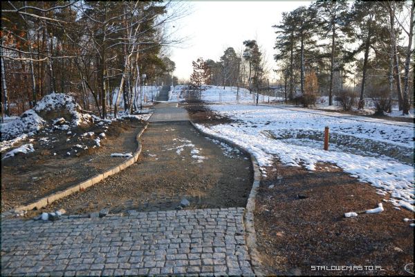 Roboty stanęły w miejscu…Obecnie w parku nie ma jeszcze do końca ułożonego deptaka z kamienia. Do zakończenia brakło około 40 metrów. Miasto przekazało wykonawcy dyspozycję, że jeśli temperatura w ciągu dnia będzie poniżej zera, to roboty mają zostać wstrzymane. To kiedy prace posuną się naprzód, zależeć więc będzie od warunków atmosferycznych. Na razie w Stalowej Woli jest mróz, a do tego pada co jakiś czas śnieg. Nie ma więc możliwości, by wznowić roboty.