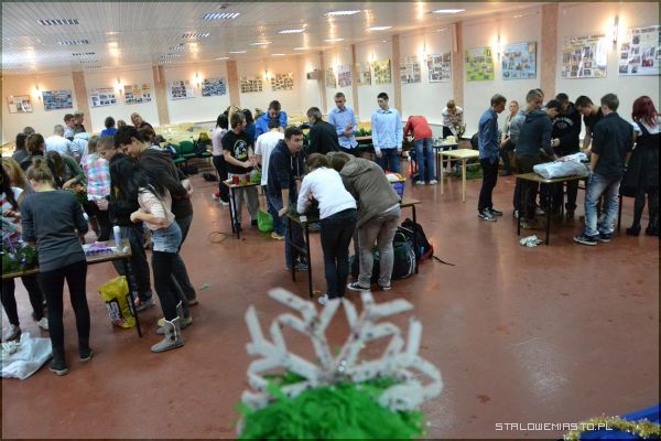 - W tym roku wpadliśmy na pomysł, żeby wyjść z inicjatywą również do innych szkół stalowowolskich. Zaprosiliśmy gimnazja, aby wzięły udział w tegorocznej edycji konkursu. W sumie odpowiedziały 4 gimnazja. Zaprosiliśmy do nas do szkoły w sumie 5 zespołów. Nie ograniczaliśmy liczby uczestników w konkursie, odbywało się to na zasadzie, że 4 osobowe zespoły robiły wieńce, później wysłały je na naszą skrzynkę pocztową i my wybieraliśmy z danej szkoły ten najpiękniejszy – mówi Magdalena Piróg.Najwięcej propozycji wieńców nadesłano z Gimnazjum Katolickiego, bo aż 7. W związku z tym do ZS nr 2 na finał konkursu zaproszone zostały 2 zespoły gimnazjalistów. Z pozostałych szkół przybyły 4-osobowe zespoły, twórcy najładniejszych wieńców wraz z nauczycielami. Z innych placówek nadesłano zdjęcia pojedynczych wieńców, być może we własnym gronie został wybrany ten najładniejszy.