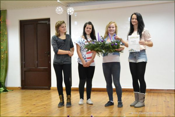 Każdy uczestnik konkursu otrzymał nagrody, twórcom 4 najpiękniejszych wieńców wręczono słodycze, choinki i ozdoby choinkowe. Inni uczestnicy konkursu otrzymali na pocieszenie czekoladowe mikołaje.