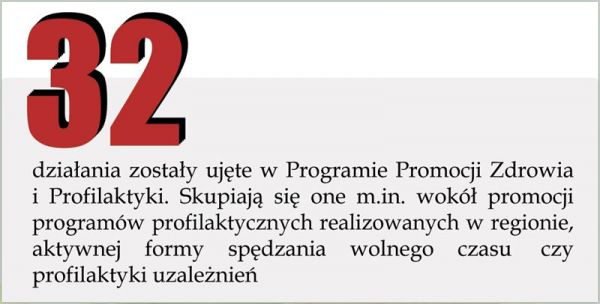 Profilaktyka? Tak, ale jaka?Drugim obszarem wokół którego porusza się program to profilaktyka. O tym jak ważna jest edukacja mieszkańców w tym zakresie, świadczy efekt diagnozy z której wynika, że blisko 7 na 10 osób nie ma pojęcia o żadnych programach profilaktycznych realizowanych w regionie! Działania ujęte w dokumencie mają zwiększyć świadomość na temat tego jakie programy profilaktyczne realizowane są w okolic, do kogo są skierowane i jak można z nich skorzystać. Mowa tu m.in. o siedmiu programach profilaktycznych realizowanych przez Narodowy Fundusz Zdrowia w Rzeszowie czy działaniach z zakresu profilaktyki narkotykowej wśród młodzieży.