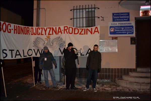 Około 50 osób zgromadziło się w czwartek 13 grudnia przed budynkiem SLD. W pikiecie wzięli udział: Młodzież Wszechpolska, ONR, Autonomiczni Nacjonaliści, Narodowy Rzeszów oraz inni.