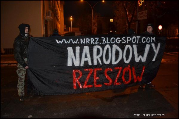 Na manifestacji w Rzeszowie byli stalowowolanie a dokładniej Autonomiczni Nacjonaliści z transparentem tym co powyżej.