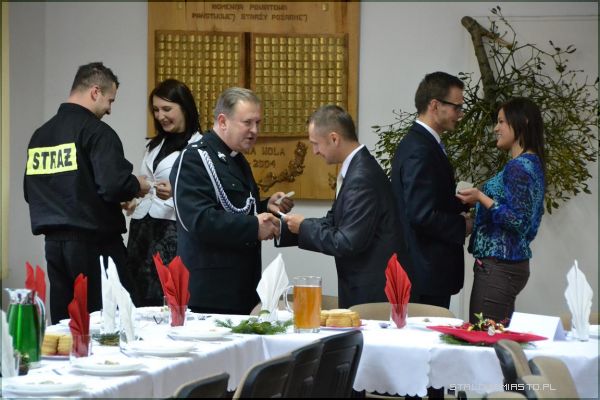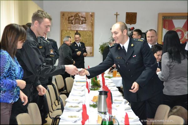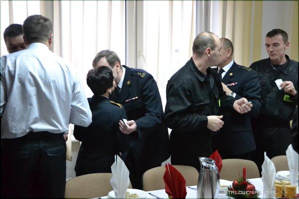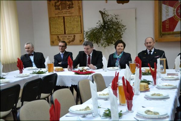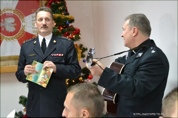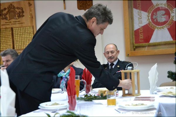 - W dniu specjalnym, który zdarza się raz do roku (jak śpiewały „Czerwone gitary”, zaczyna się nie rano, ale już o zmroku), jest nasza strażacka wigilia. Nasza rodzina strażacka to nie tylko strażacy, to są ci wszyscy, którzy nam dobrze życzą, to są ci, którzy nam pomagają, dlatego dzisiaj w tej właśnie, szerszej formule, szerszej rodzinie strażackiej spotykamy się, żeby się podzielić opłatkiem, żeby to co było i to co jest za nami zapamiętać, to co było dobre, a na przyszłość życzyć sobie jeszcze lepszych rzeczy – mówił st. bryg. mgr inż. Tadeusz Niedziałek, komendant PSP w Stalowej Woli.Po życzeniach komendanta strażacy oraz wszyscy zaproszeni goście wspólnie zaśpiewali kolędę „Wśród nocnej ciszy”. Został również odczytany fragment pisma świętego (Ewangelii św. Łukasza), głos zabrał także ksiądz kapelan Straży Pożarnej, który przypomniał co najważniejsze w nadchodzących świętach, wyjaśnił symbolikę chleba i ryby, którą spożywamy przy wigilijnym stole.