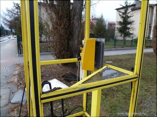 Coś portal opóźnił się z tą informacją. Do zniszczenia budki doszło w wyniku rzucenia do niej petardy w noc Sylwestrową.Pisały o tym inne media. Dziwi tylko to,że w pobliżu jest postój taxi i nikt nic nie widział i nie zareagował. Sprawca powinien ponieść surową karę za taką dewastację. Pomijajac straty materialne uświadomić głupcom należy, że dzięki temu telefonowi ktoś może uzyskać pomoc medyczną, straży pożarnej czy też policji.Nie wszyscy, zwłaszcza osoby starsze dysponuja telefonami komórkowymi. A przy okazji to wspomnieć należy że w Sylwestra od północy telefony komórkowe na terenie St. Woli i nie tylko nie działały z uwagi na przeciążenie sieci. Była natomiast możliwość korzystania tylko z telefonów stacjonarnych.