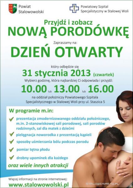 Wreszcie będą one dostosowane do współczesnych standardów i potrzeb matek. O tym jak bardzo zmieniła się „porodówka”, mieszkańcy będą mogli przekonać się po raz pierwszy już 31 stycznia 2013 roku. Tego dnia „porodówka” otworzy swoje drzwi dla zainteresowanych trzykrotnie: o godzinie 10.00, 13.00 oraz 16.00.