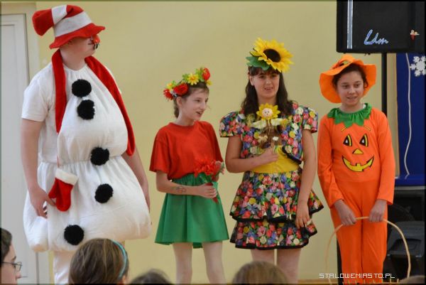 - Dzisiaj w naszej szkole jest niezmiernie ważne wydarzenie, jak zawsze po nowym roku jest karnawał. Jest to już taka nasza znacząca tradycja dla naszych uczniów w szkole. Wszyscy z wielkim zaciekawieniem wyczekują tego wydarzenia, bo warto zaznaczyć, mamy ciągle nowe pomysły. W tym roku w nowym roku 2013 w nowej szkole będzie to inscenizacja zimowa pt. Noworoczne życzenia, życzenia przeplatane w czterech porach roku – mówiła w rozmowie z nami Krystyna Teper.Ostatniego dnia stycznia br. uczniowie przebrani w barwach różnych pór roku zagrali w inscenizacji zimowej pt. Noworoczne życzenia. Każda z pór roku przyniosła widowni inne widowisko. Zima zaprosiła na parkiet śnieżynki w układzie tanecznym. Wiosna przyniosła kolorowe kwiaty i pozwoliła przyrodzie obudzić się do życia. Lato zaświeciło radośnie dla widowni, natomiast jesień opadami deszczu i deszczową piosenkę rozbawiła oglądających. Wszystkie pory roku złożyły mieszkańcom najwspanialsze życzenia.