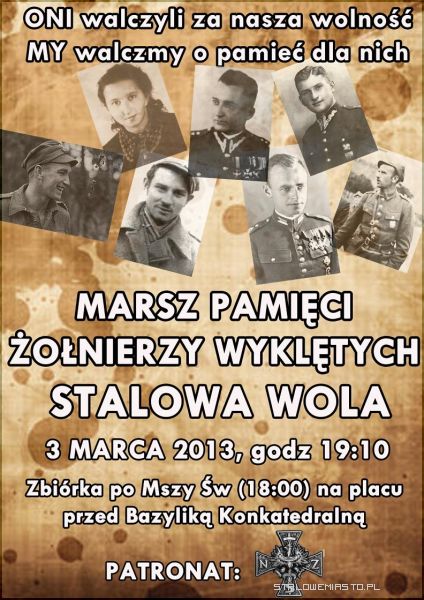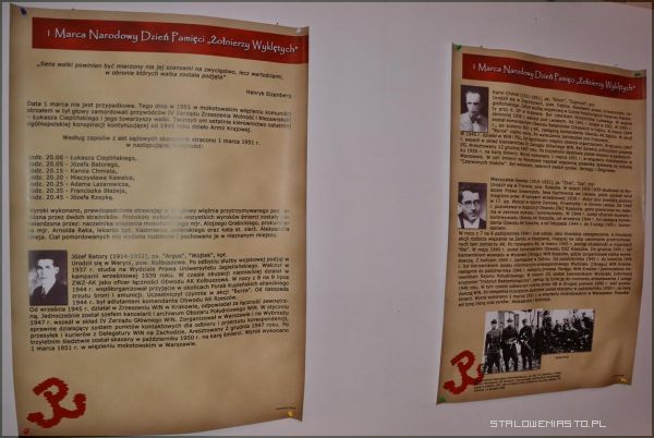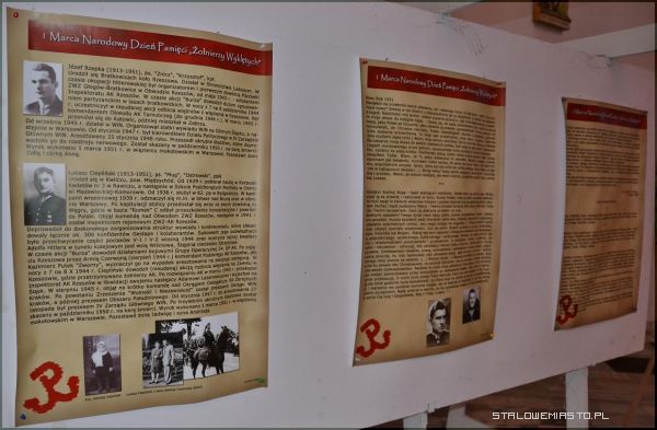 1 marca- Dzień Pamięci o Żołnierzach Wyklętych, to data, która nie jest przypadkowa. Tego dnia bowiem w 1953 r., komuniści dokonali egzekucji na członkach IV Zarządu organizacji „Wolność i Niezawisłość”, dlatego oprócz ogólnej charakterystyki Dnia Pamięci, ekspozycja wystawiona w Bazylice Konkatedralnej w Stalowej Woli, w szczególności przedstawia sylwetki postaci IV Zarządu oraz poruszające grypsy ppłk Łukasza Cieplińskiego pisane do swojej żony i synka...