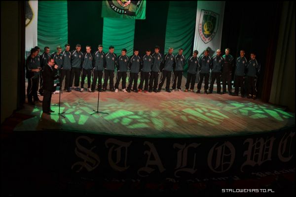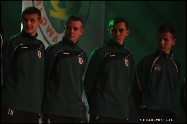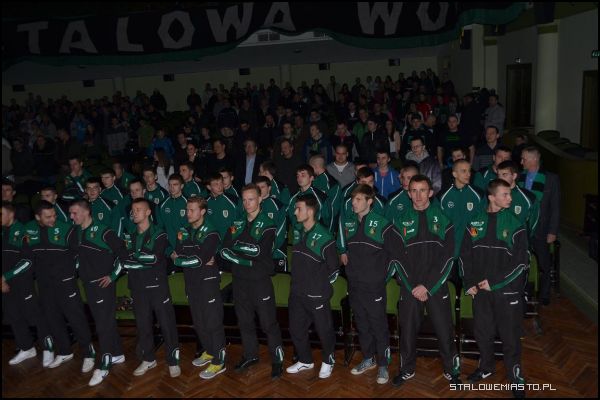 - Spotkaliśmy się tu dzisiaj aby przestawić głównych aktorów II ligowych rozgrywek piłkarskich, którzy będą bronić barw naszej Stalówki w rundzie wiosennej sezonu 2012/2013 r. Jednak nie byłoby nas dziś tu, gdyby nie organizator dzisiejszej imprezy – Stowarzyszenie Kibiców Stali Stalowa Wola – a właściwie garstki zapaleńców, wiernych sympatyków naszego klubu, ludzi, którzy poświęcają swój czas, środki na to, by w tych trudnych czasach wspierać na wszystkie możliwe sposoby swój ukochany klub w niełatwych czasach – przywitał zebranych w sali widowiskowej Miejskiego Domu Kultury kibiców Adam Krotoszyński.Zanim główni bohaterowie wieczoru stanęli przed kibicami, zaprezentowali się młodsi adepci piłkarskiego rzemiosła. Ci młodzi zawodnicy już niedługo mogą stanowić siłę główną stalowowolskiej drużyny. Stal Stalowa Wola prowadzi szkolenia młodzieży w 11 grupach wiekowych. W sumie piłkę nożną trenuje ponad 300 chłopców. Pierwsi zaprezentowali się młodsi juniorzy z rocznika 1997 prowadzeni przez trenera Jerzego Hnatkiewicza. Następnie na scenę wkroczyli juniorzy z 1996 r., którzy trenują pod okiem Leszka Brzezińskiego. Na koniec zobaczyliśmy starszych juniorów z roczników 1994-1995, którzy pracują pod okiem Jaromira Wieprzęcia.