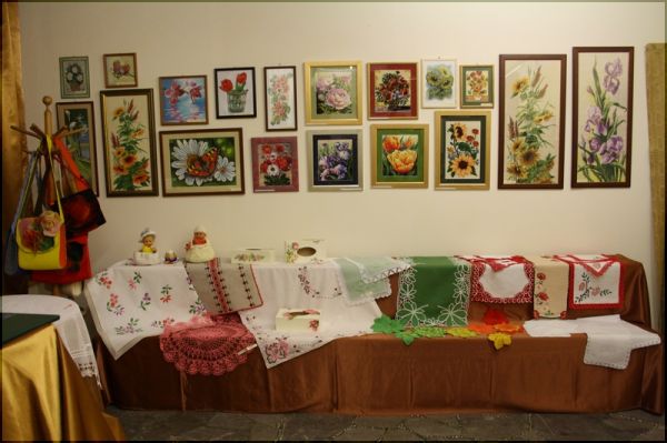 Ekspozycja licząca ponad 200 różnorodnych prac, wypełniła po brzegi salę wystawienniczą. Prezentowane prace wykonane zostały różnymi technikami. Króluje haft krzyżykowy i koronki szydełkowe, ale można zobaczyć także różne rodzaje haftu i prace na drutach. Ciekawym elementem wystawy są kartki i ozdoby świąteczne oraz unikatowa biżuteria. Nowością tegorocznej ekspozycji są oryginalne torebki, lalki oraz koronka irlandzka.