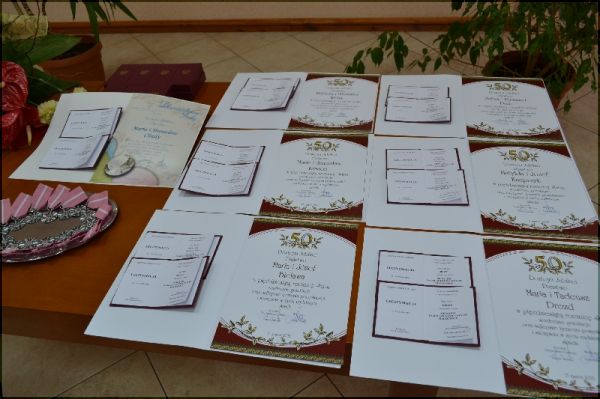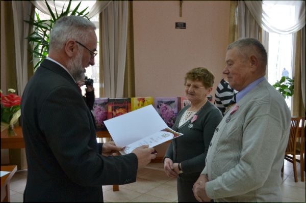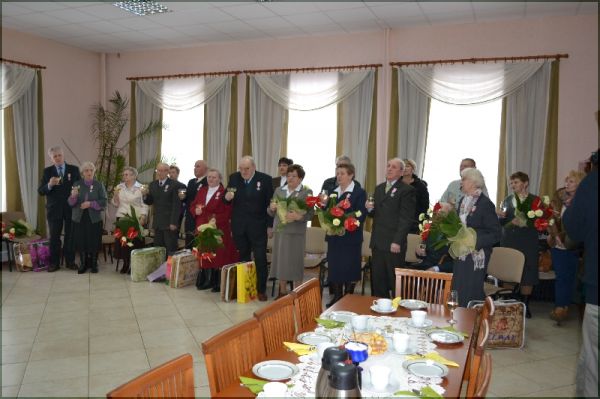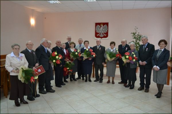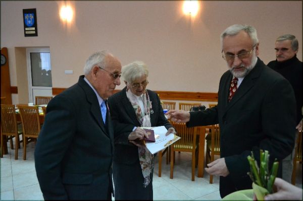 Na cześć dostojnych Jubilatów wzniesiono toast szampanem i odśpiewano sto lat. Były medale, dyplomy i okolicznościowe upominki. Po części oficjalnej dostojni jubilaci wspólnie z członkami swoich rodzin zasiedli do poczęstunku. Małżonkowie cieszyli się, że o nich pamiętano i mieli możliwość spędzenia czasu w miłej atmosferze. Diamentowe Gody obchodzili Państwo Maria i Stanisław Chudy z Motycza Szlacheckiego.